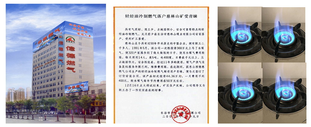 輕烴冷制燃?xì)猓?993年前研究的也是加溫制氣,做了107戶供氣,輕烴加溫36度以上就產(chǎn)氣,天氣冷,每天多次排殘液、管道每天排3~5(水)桶凝液(輕烴),火勢(shì)不穩(wěn),也威脅安全,準(zhǔn)備放棄改煤氣;國(guó)務(wù)院要求發(fā)展油制氣,研究不加溫試試,根據(jù)汽車(chē)用水降溫,摩托車(chē)用風(fēng)降溫不拉缸原理啟示,不兌任何添加劑,將輕烴完全汽化,解決了殘液、凝液?jiǎn)栴},專(zhuān)門(mén)改裝了1梯6戶,室外明管不保溫,在零下23度沒(méi)有凝液,經(jīng)完善達(dá)到了供氣穩(wěn)定的目的,承建了多個(gè)小區(qū),常溫低壓供氣,使用穩(wěn)定,找不到任何缺點(diǎn);于2003~2005年八次向黨中央,國(guó)務(wù)院、有關(guān)部委報(bào)《喜報(bào)》:得到了大力支持,定為《國(guó)家鼓勵(lì)發(fā)展的資源節(jié)約綜合利用和環(huán)境保護(hù)技術(shù)項(xiàng)目》、《免稅項(xiàng)目》和《城市燃?xì)狻贰?/span>